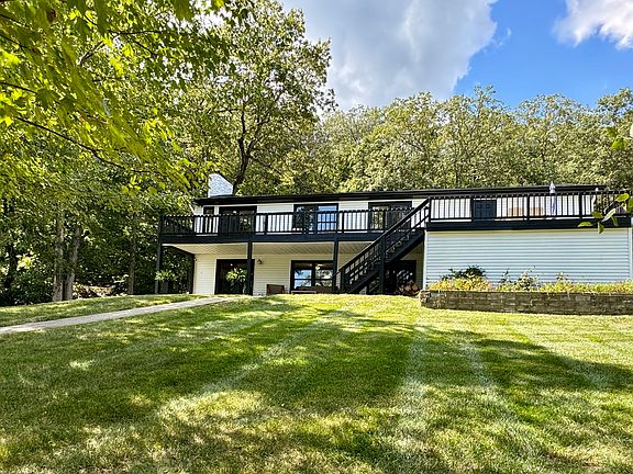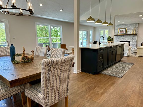 Welcome to Grandview Lake, southern IN's largest and cleanest private lake. This charming ranch has undergone a wonderful renovation and is move in ready! There is an open concept main level with vaulted ceilings, a beautiful kitchen with quartz countertops, stainless steel appliances and a large island for gathering. The living room area is positioned to take advantage of the fire place, and the lake vistas. Additionally on the main level is the primary suite, two additional guest rooms and a full bathroom. The walk out lower level also has an abundance of space. There is a large bar with a built in kegerator, an additional family room, as well as the fourth bedroom, perfectly set up as a bunk room. A stroll down the lightly sloping yard brings you down to the beach, pavilion and the boat. The large sandy beach is great for the kiddos, and the crystal clear water with ample depth is great for swimming and floating. There is loads of parking for your guests as well! Don't miss your chance to take a tour of this beautiful home.