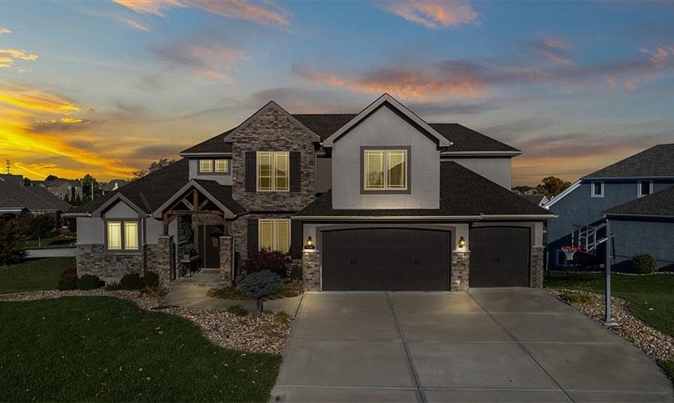 Upon entering this exquisite 1.5 story home, you're greeted by a grand open floor plan highlighted by soaring 17-foot custom vaulted ceilings, exuding sophistication and style. The heart of this home is the stunning kitchen, a culinary haven with Quartz countertops, a generous 9-foot island, and a walk-in pantry. The formal dining room and elegant foyer provide the perfect backdrop for entertaining. The main floor primary suite offers a spa-like retreat, featuring a luxurious wet room and an expansive walk-in closet. Step outside to the covered cedar deck, complete with a charming fireplace, ideal for relaxing and entertaining in style. The full walk out basement offers a unique opportunity for customization, with a sixth bedroom/bonus room, stubbed for another full bathroom, with already completed electrical work, sheetrock, and painting. Finish it to your taste and create your dream space. Come see everything this home has to offer!