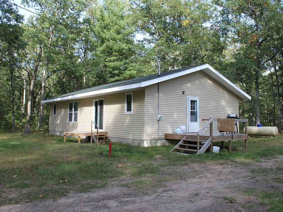 Nice 4 bedroom 2 full bath home or cottage situated on a nicely wooded 7.5 acre parcel offering 40 acres of Federal across the road. This property has been recently renovated with newer siding, roof and some additional interior updates. Open Kitchen living area and there is a full unfinished basement for additional living space with outdoor access. Additionally, there is a 24'X28' pole barn with 1 car leanto for storage, etc. Near many area lakes, rivers and streams.