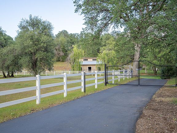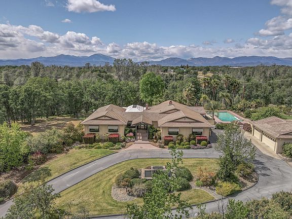 Remarkable 10 ACRE estate property! Just outside Redding City limits, this fabulous horse/animal friendly property sports a 33'x36' - 3 stall barn with tack room. Also 2 storage rooms and a hay loft plus a LIGHTED ARENA! Pass thru the electric gated entry and the horse facilities to wind up to the top of the knoll and the gorgeous homesite with 4000 sq. ft. custom quality built home. This home is 2x6 construction and has OWNED SOLAR plus a concrete tile roof! Two separate electric meters to keep KW hours/cost down. 21 KW ''Generac'' stand by generator with automatic transfer panel. Enter the home under a covered front porch to the spacious entry with new 20 inch tile flooring and glass wall to ceiling windows to view the beautiful atrium area. Bella wood floors in the living