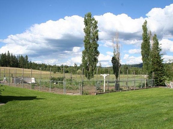 Breath taking view of Mount Spokane. Totally sustainable 18.66 acre mini farm. Love to garden? This one is for you! This traditional farmhouse is over 2800 square feet and has a fun surprise in the kitchen! The yard is large with underground sprinklers and concrete edgings. The gardens already have well established thorn-less blackberries, asparagus and lots of flower beds. There are many outbuildings including a milking barn, 5 stall machine shed and a barn. Electricity is in all of the buildings.