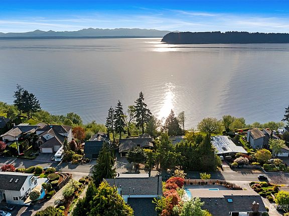 Welcome to our beautiful Mukilteo Estate, 180 degree water views & sunsets. Beach access(NOT OWNERSHIP) (It is a hike & you do cross railroad tracks). The views are breath taking & the sunsets of full color. The home has wall windows w-reflections in the water of the Olympic Mountains & sits high on a hill side allowing scenic views. The Estate w-high ceilings, 4 bdrms & views from every room. Primary bedroom is very large w-private viewing deck & beautiful fireplace for the warmth & ambience one would enjoy. The dinning room w-sliding glass doors to viewing deck & has a connecting entrance at the kitchen. The kitchen is bright has area for table and is next to oversized pantry. Extravagant fire place Impressive upon entering.