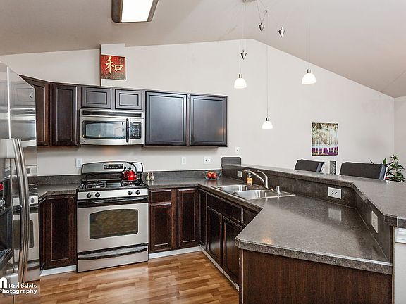 Beautiful town home in desirable Ridgemont subdivision - 3 beds, 2 1/2 baths plus a sizable 2-car garage. Enjoy open living, vaulted ceilings, gas fireplace, breakfast bar, gas range and a spacious master suite with a large walk-in closet. A true end unit, south facing & surrounded by trees and a greenbelt!
