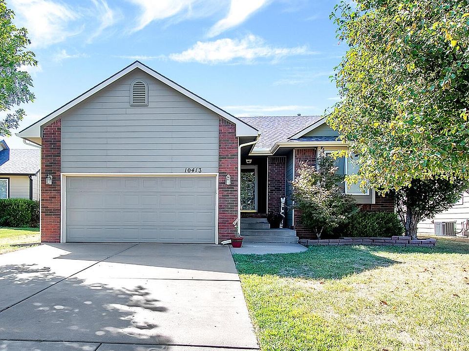 Check out this move in ready 3-bedroom house in the Goddard School District! This updated home has been meticulously maintained inside and out. Walk inside onto hardwood floors and you’ll appreciate the wide-open living area, vaulted ceilings, and attractive fireplace. The kitchen comes fully applianced and offers ample storage along with lots of countertop space. Upstairs you’ll find a full hall bath and 2 bedrooms including the master with its own private walk-in closet and full bath offering a dual vanity, walk-in shower, and tub. Head downstairs to the large family room, an extra bedroom, and tons of storage. There’s an extra roughed-in bathroom ready to be finished with a vanity already purchased still in the box! Outside you’ll appreciate low-maintenance Hardie siding, a covered back patio, and amazing neighborhood amenities. Check out the aerial photos to get a great view of the lake side walking paths, basketball and tennis courts, playground, and massive pool. Don’t miss out on this amazing opportunity! Call for a tour today!