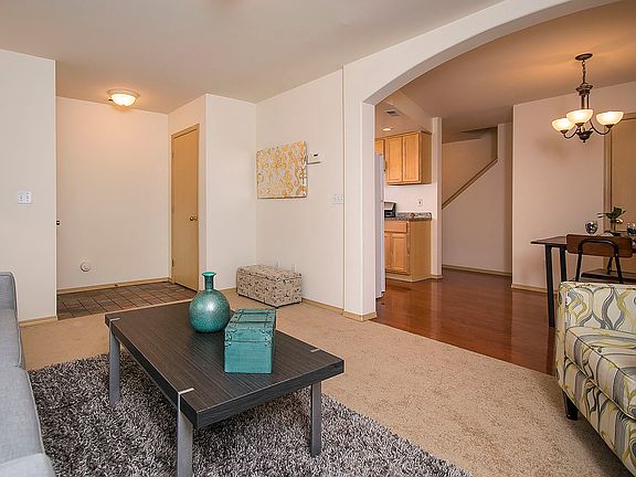 Light, bright & turn-key townhome. Spacious living room with gas fireplace greets you upon entry. Fantastic open floor plan boasts fresh interior paint and all new carpets. Kitchen with granite counters and stainless steel gas stove. Entertain in the large dining area with slider accessing a cute patio. Many updates make this desired front unit move-in ready. Rare forced air, natural gas furnace and gas hot water tank. Shares only one wall. 2 parking spaces directly in front. Located on a quiet street, close to shopping with an easy commute. Cats & dogs are welcome!