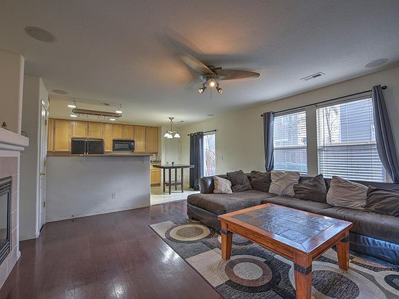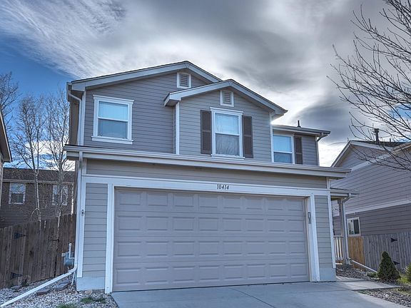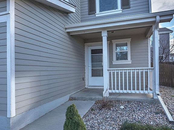 3 BR/3BA in Idaho Creek includes granite countertops & travertine backsplash in kitchen. Great Room features cherry hardwood, surround sound speakers and gas fireplace. This home has central AC, forced air heating, and a 2-car garage w/ additional built in storage. NEWER CARPET throughout!! Landscaped lawn has sprinkler system (water covered under HOA), enclosed privacy fence, patio area w/ custom stone & sunken fire pit. Great location near I-25 makes for an easy commute.