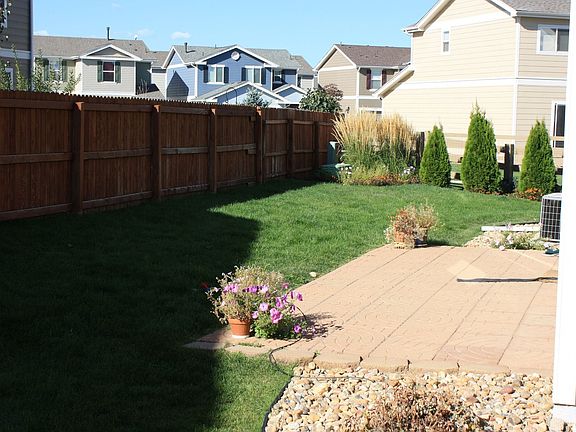 HURRY, THIS ONE WILL GO FAST! GREAT STARTER HOME WITH EASY ACCESS TO I-25 FOR COMMUTERS. RARE 4 BEDROOM W/ ONE OF THE LARGER LOTS IN THIS AREA! ADJACENT TO OPEN SPACE AND WALKING TRAILS. LARGE MASTER W/ WALK IN CLOSET AND FULL BATH. SPACIOUS EAT IN KITCHEN W/ MAPLE CABINETS, LARGE PANTRY, & LOTS OF SUNSHINE! MAIN LEVEL LAUNDRY W/ ADDED SHELVES AND ALL APPLIANCES INCLUDED. CENTRAL A/C, SPRINKLER SYSTEM FRONT AND BACK, CEILING FANS IN GREAT ROOM AND TWO BEDROOMS.