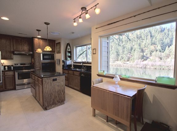 The Still Water Place. A stretch of calm water with 450 feet of Rogue River frontage. Picture windows form living portraits of wildlife with magnificent views of the Wild & Scenic Rogue River. This cozy home is a fisherman's paradise with 2 boat docks, custom gated entries, cement siding and plenty of room for boats, rafts and kayaks in a spacious garage. Granite counters, solar tube & recessed lighting, stainless steel appliances, 2 ovens and gorgeous views of the river. Mature and young fruit trees, blueberries, raspberries and figs grow along the rivers edge. A garden, patio, shop & guest house. The world renowned Wild & Scenic Rogue River is known for winter and summer steelhead, spring & fall chinook and whitewater rafting. All information deemed accurate but not warranted. Uses and conditions should be validated by interested parties.