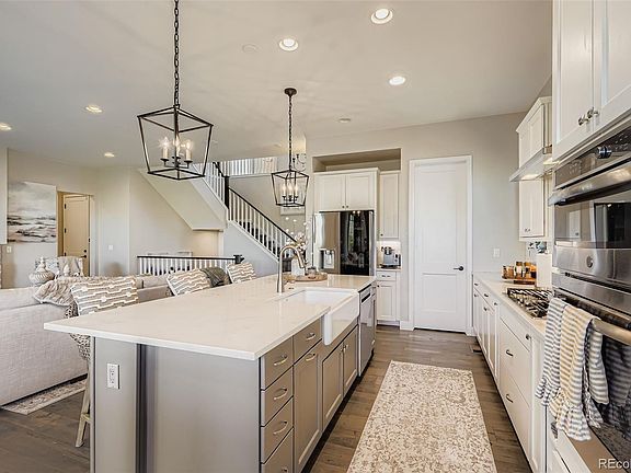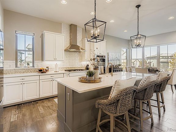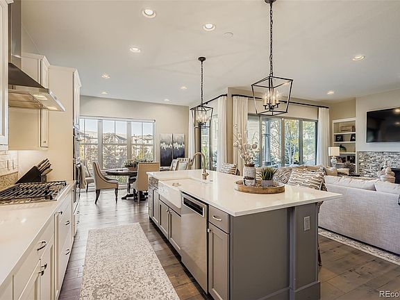 Discover luxurious living in this meticulously maintained 4-bedroom, 4-bathroom Highlands Ranch home in the gated Backcountry neighborhood. This 3,770 sq. ft. residence boasts a gourmet kitchen with quartzite counters, a gas stove-top, and walk-in pantry. The eat-in kitchen is surrounded by over-sized windows that flood the space with natural light. The open floor plan has tall ceilings, and seamless indoor-outdoor living through large sliding doors leading to a covered outdoor space, where you can relax and enjoy the low maintenance landscaping. A main level office, with glass french doors and windows galore, is the perfect place to spend your work day. Retreat upstairs to the expansive primary suite with a spa-like 5-piece ensuite and large walk-in closet. Enjoy mountain views from two secondary bedrooms, and the conveniently located upstairs laundry. An extra-wide, grand staircase leads down to the finished basement which offers a second large gathering area, wet bar, guestroom with private bath, and ample storage. The whole house has automatic Somfy shades, and a 4 zone sound system wired for Sonos. The insulated garage with epoxy floors features a west-facing driveway that quickly melts the snow away. Exclusive access to the hub of the neighborhood - the Sundial House - provides a restaurant, lounge, pool, and health/wellness facilities. Backcountry residents also get access to private trails for all-season activities like hiking, biking and snowshoeing, and the opportunity to see all the wildlife that Colorado has to offer. Experience a luxury home with resort-like amenities at every turn. Schedule your showing today!