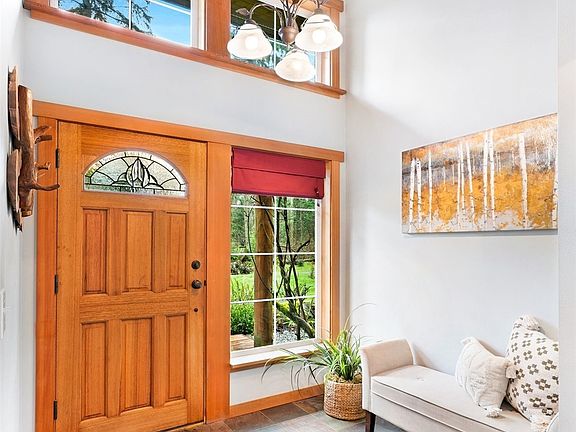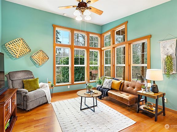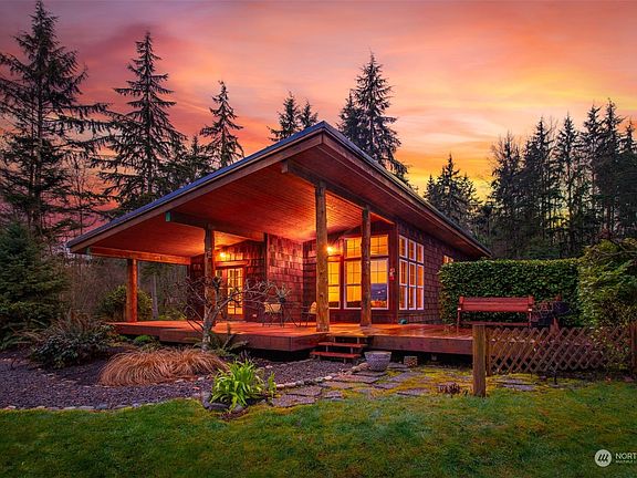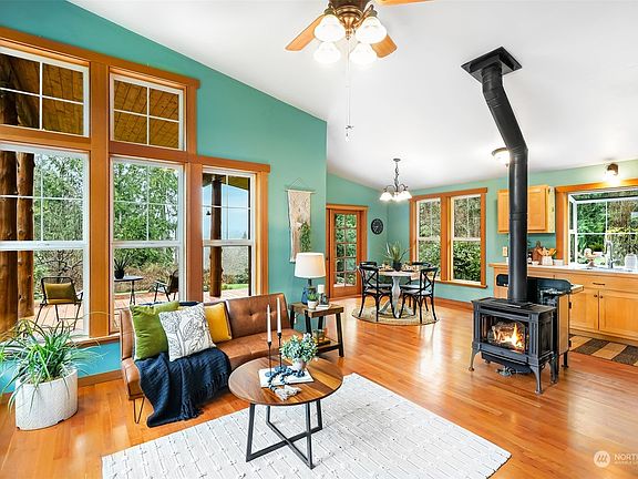 Nestled on nearly six acres in Arlington & surrounded by natural beauty, this custom-built home combines a cozy cabin & traditional PNW-inspired design! The family room's plentiful large windows overlook the beautiful landscape; natural light fills the space. At the end of your day, you will love cozying up near the free-standing stove. The home includes two bedrooms, 3/4 bathroom, & a covered outdoor living space for year-round enjoyment. The park-like property transports you into the heart of nature, with stunning views, walking trails, gorgeous landscaping, & more. A detached garage & carport offers ample space for cars & recreational vehicles. Peaceful & convenient–close to Downtown Arlington,, restaurants, outdoor recreation, & more!