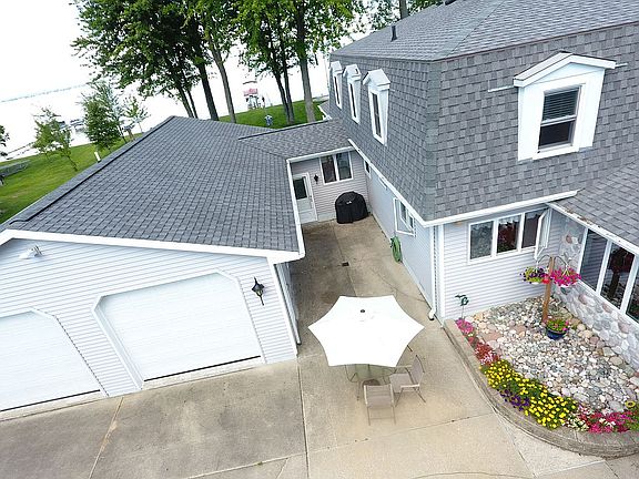 BEAUTIFUL WATERFRONT HOME AWAITS!!! Situated on 100' of sandy bottom shoreline on Houghton Lake's North Bay, with gorgeous sunsets every season. Perfect location for boating, snowmobiling, and riding ATVs, with plenty of storage for those toys, too! Attached two car heated garage, as well as an attached workshop/garage with heated floors, half bathroom, air cleaner, and chain fall lift, one large detached storage garage, and a lakeside storage shed. No need to rent space for seasonal storage! This home provides plenty of space to accommodate large families and friends!! The large apartment above the garage could be utilized as living and sleeping quarters, bonus recreation space, or storage space. The main floor offers a full bathroom, bedroom with a generous closet and