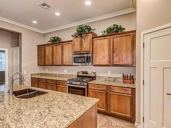 No upgrades were spared in this move-in ready 4 bed, 3 bath single story NEW home! With over 1900 sf of living space, this home features upgrades like crown molding, chair rails, neutral paint, ceiling fans, plus a large granite kitchen complete w/ island, stainless appliances and 2 spacious pantries. The cozy split floor plan offers the master bedroom in the back of the home with a large bathroom offering dual vanities and separate tub and shower. This home boasts low-maintenance landscaping in both the front and back yards including synthetic grass. The 3-car garage is highlighted with new ''Epoxology'' floors. This home is loaded with thoughtful touches like tile in the master closet, extra shelving and rods in all bedroom closets, energy efficient bulbs & new plants. See it today!