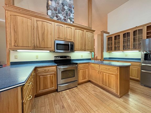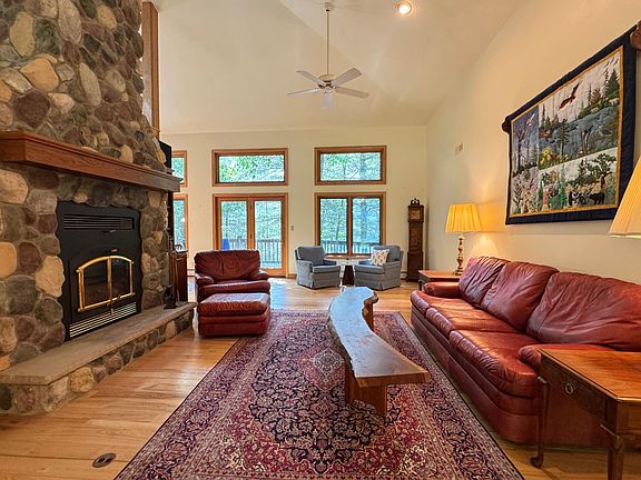 This spacious 4-BD, 3.5 BA home is situated on quiet MALBY LAKE with level frontage to the sand beach shoreline, and plenty of mature pines to give you a private setting. Custom built, it offers an open & airy layout with vaulted ceilings, two dining areas & a floor to ceiling wood burning fieldstone FP that anchors the main living space. Main floor primary BD/BA, laundry/mudroom & dedicated office provides space to work from home. LL features a Jr. Suite, 2 more BD's, large walk-out family room & plentiful storage-there's even bonus storage for the lake toys that can be accessed from the exterior. With a floor plan designed for family & entertaining in mind, everyone has their space in this house. Heated 2 stall garage w/ sink plus an adt. detached garage that is partially finished, perfect for a hobby or rec room. Whether you're looking for year round space or just a peaceful place to get away to-this home offers a beautiful natural setting just 5 miles from Minocqua.