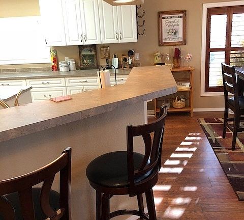 Gorgeous 2006 Moduline mfg home in Spokane's premier Sundance Meadows 55+ park. 3 bed/2 baths. (Middle bedroom is set up as an office) 2 car attached garage. Newer flooring, big kitchen w/island & skylights. Bay window dining area. Gas fireplace & furnace, A/C, Plantation shutters. Huge master suite w/ step in shower, double sinks, walk in closet plus double closet. Covered Trex deck, vinyl windows, vinyl fencing, vinyl siding. Community clubhouse, gated entry, RV storage available.