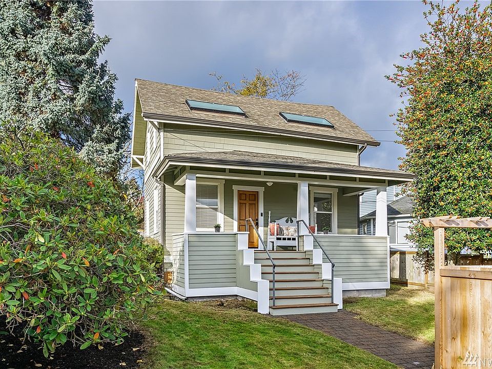 Do not miss this Majestic Craftsman situated high above the street! This home is full of character. Peek-A-Boo views of Lake Washington greet you from the old school front porch. Updates inside include: newer flooring in the living room; kitchen with eating space, SS appliances & granite countertops; half bath on the main & newer W/D in mud room. Beautiful hardwood doors. Skylights upstairs let in lots of natural light. Fully fenced yard with cute patio for entertaining. Close to public trans.