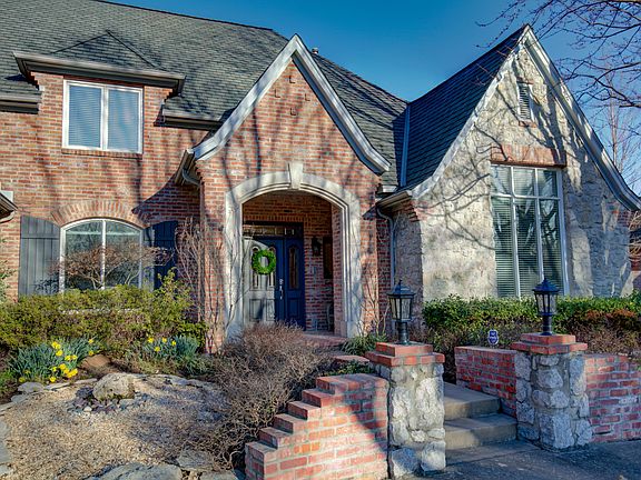 Lovely brick and stone home in Forest Park South. Jenks SE. High ceilings greet you in the entry with wood floors open to dining room, study & living room. Spacious master down w/ fireplace, updated master bath, 2 closets. Granite kitchen w/ island open to den w/ fireplace & nook. Gorgeous arbor over looking gunite pool, fireplace, built in grill, perfect entertaining area. Spacious bedrooms up & 3 full baths. Game room c/b 5th bedroom. Big 3 car side entry garage.