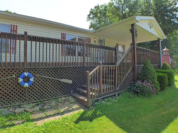 Take advantage of this opportunity to have a weekend/vacation home right on the Muskingum River. This property offers a lot to the next owner. One story home has 3 Bedrooms and 2 Full Baths that overlooks the water right from your front porch. Also has its own well and septic. Comes with a dock for your boat, another small deck that sits on the bank. There is a one car detached garage next to the home along with a 3 car detached garage on the other side of the road. Get away from the grind of the work week and get yourself to the river on the weekend!