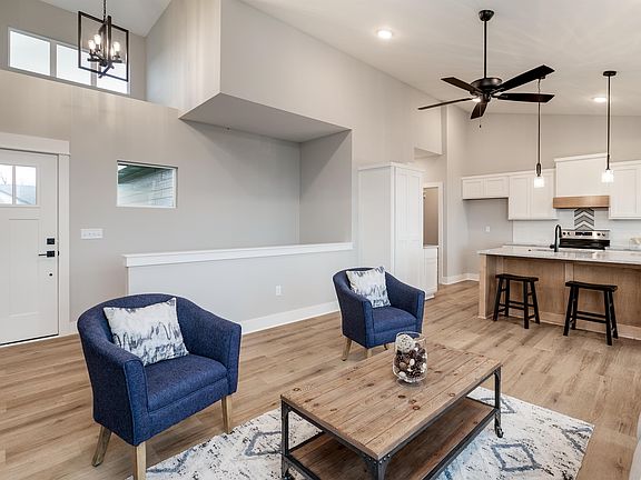 This beautiful Elliana floor plan by JK Blue Living is sure to impress. Enjoy this open concept 3 bed 2 bath home with just under 1,500 sq. ft. on the main. Large windows throughout offer lots of natural light in and the lighter finishes make the home feel open and spacious. The primary bedroom features an en suite bathroom with beautiful tile work in the shower and above the dual sink vanity, spacious walk in closet that is connected to main floor laundry room. Basement is framed for a future 2 bed,1bath and family room. Basement can be finished in about 30-45 days for around $20,000. Home backs to a tree row that will grow to add additional privacy. Irrigation well, sod and sprinkler system included. In highly sought after Goddard School District. Taxes and Specials estimated. All information deemed reliable but not guaranteed and is subject to change without notice.
