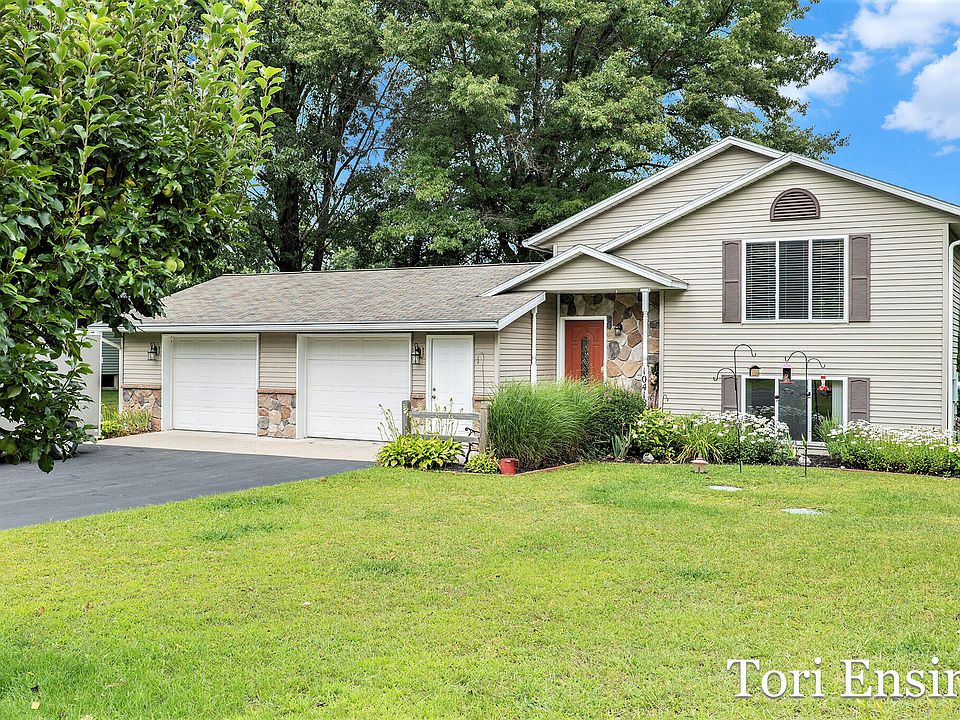 Move-in-ready bi-level home in Greenville School district. Main level has open kitchen, dining and living room. 2 bedrooms and 1 full bathroom. Slider door leads to great sized deck perfect for entertaining! Lower level has 2nd living room with gas fireplace, 3rd bedroom and 2nd full bathroom. Great storage space and laundry area. Outside you will find a 2.5 stall attached garage and storage shed! Many updates have been done in the last few years. New patio door 2018, A/C, Furnace & water heater 2021, R.O. system 2023. Home is conveniently located on a quiet street just minutes from schools and town. Schedule your private showing today!