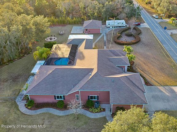 Active Under Contract. Exceptional & unexpected is what you'll see in this custom build corner lot property. Sits on under 1.25 acres of Mature landscaped fenced yard. Double door entry leads into Formal living & dining room with coastal inspired theme. Neutral tones through out the rest of the property. An open floor plan with chef's style kitchen and lots of granite counter space. Complete with custom wood cabinets & SS Appliances 2017 enough room for all to gather around. Breakfast nook & family room view the outdoor pool area and beyond. Bonus room 16 x32' is currently a game room complete with an 8' pool table. Could be converted into additional 4th bedroom & office or media room/man cave with a double entry. Split floor plan has 2 good sized bedrooms at opposite end. 1st bedroom is oversized with large walk in closet . In the middle the guest bath with walk in shower, dual vanities and 2 linen closets on outside. 2nd bedroom has plenty of space & large closet. Master is secluded on the other end with sliders leading out to your pool & hot tub. His & Hers walk in closets. Spacious En suite w/ dual vanities, jetted garden tub and walk in shower also a private wash closet. New screen enclosure, stamped concrete pool deck, cabana style bar area with granite counters, stainless grill & storage. LED exterior lighting. Perfect for entertaining year round. Detached 2 car garage 720' with a 16x32 slab behind it leads to stamped concrete fire pit & out door pergola .Many extra's such as surround sound, security sys. HVAC 2016,