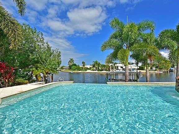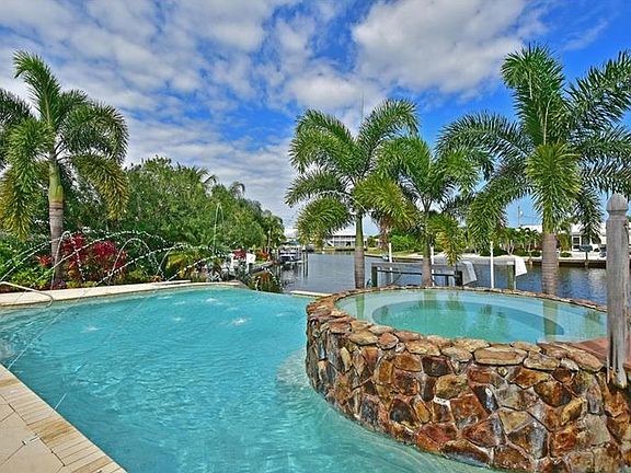 AWC - Taking Backup Offers Escape to Flamingo Cay just 2 miles from Anna Maria Island! This gorgeous, one of a kind home received major custom renovations and additions completed in 2003. Over 2800 square feet with four bedrooms (2 en suite) and three full bathrooms. Enjoy sun and fun in the massive, custom designed infinity edge, heated pool/spa and amazing water features. Elegant, gourmet kitchen with custom wood cabinetry, luxury appliances and high bar. Two sided, propane fireplace serves both living and dining areas. Open floor plan with cathedral ceiling through the living room area with plenty of lounging and entertaining space. Salt water canal provides easy access from your boat lift to Palma Sola Bay, ICW and Gulf of Mexico. Short boat ride to Anna Maria Island and historic Bridge Street shops and restaurants. The canal is also home to many dolphin, manatee and Florida bird life that you will enjoy from your pool, deck or dock. A beautiful pergola adorns the outdoor kitchen surrounded by lush, tropical landscape. One look and you will see why Flamingo Cay residents love to call this waterfront community their home!