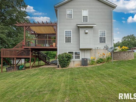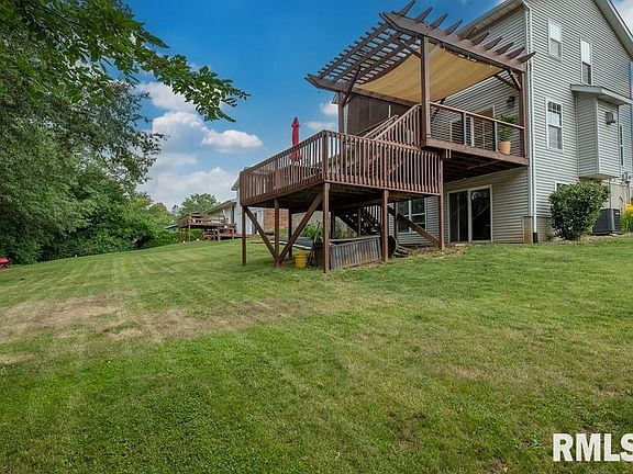 Welcome Home to this Lake Camelot beauty! This 2 story 3 bed 2 full & 2 half bath is just waiting for new owners! This home has hardwood floors on the main level, living room with gas log fireplace, formal dining, eat in kitchen and half bath. Upstairs you will find a full bath, primary suite with walk in shower & closet, bedrooms 2 & 3 plus laundry! The walkout finished basement has a family room, office and 1/2 bath. Enjoy entertaining on the beautiful deck with awning and pergola and take in the gorgeous view of the upper lake! Lake Camelot has 2 lakes for boating, fishing, kayaking and a beautiful pool! Enjoy year around activities! Illini Bluffs school district! Come and see what lake life is all about in this great community!