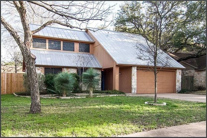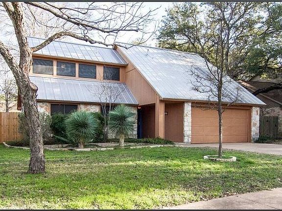 Desirable The Woodlands At Anderson Mill Village* Versatile Floor Plan w/ 2 Beds + Bath Down and 2 Beds + Bath [Jack 'N Jill + 2 Dressing Areas] Up. Great Plan For Having Guests, Roommates, Parents, or Offices. Large, Open Family Room w/ Fireplace and High Ceiling. Kitchen Has Bosch Dishwasher and Microwave; Open To Dining Area. Saltillo Tile Floor In Downstairs Active Areas. Metal Roof & 3-Sides Masonry Reduce Maintenance. Private Back Yard w/ Large Trees and Shade Pergola. Quiet Part of the Neighborhood. Nearby Parks/Trails, Two Public Pools, Senior Center, & Major Shopping and Restaurants [Lakeline Mall]. Easy Access to Major Roadways and Toll Roads. Priced Below Tax Market Value.