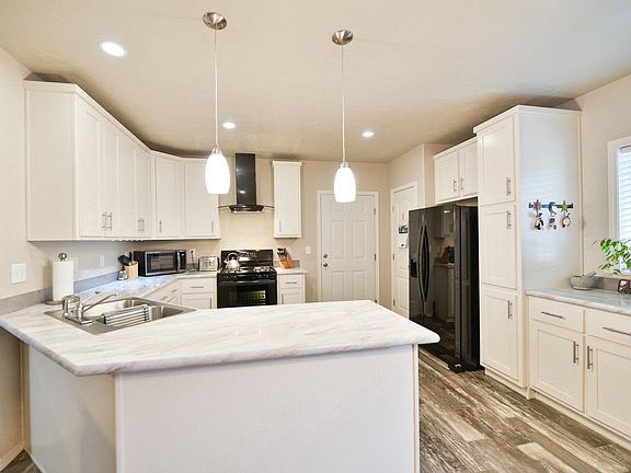 Come see one level living at its finest! Sundance Meadows is a gated 55+ community located in beautiful Nine Mile Falls. Super close proximity to Bowl & Pitcher, Suncrest shopping, hike trails, bike trails & more! Need to get downtown? Only a 10 minute or less drive! This 2020 built home is true one level living. Open concept living room adjoins the spacious kitchen with TONS of storage space and beautiful cabinets & counters. Simple to clean linoleum in kitchen, bathrooms, laundry & hallway, nice cushy carpet in the living room & bedrooms. Attached 2 car garage is newly finished & insulated & leads right into the kitchen for ease of carrying groceries. The primary bedroom is extra spacious with an en-suite you can’t miss. Step-in shower, double sinks & mirrors, & a large walk-in closet. Two other bedrooms & full bath round out this amazing home. Gas water heater, high efficiency furnace, vinyl windows, central A/C, & new exterior paint in 2021. This home is truly turn-key and ready to move