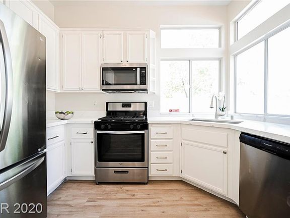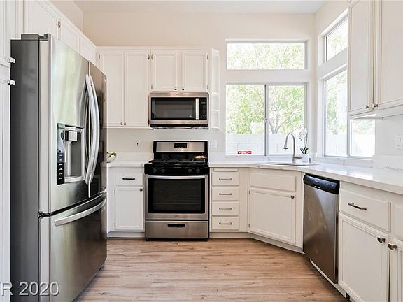 STUNNING and IMMACULATE townhouse located minutes away from TPC Las Vegas!! Interior boasts DESIGNER SELECTED THREE TONE paint scheme, MARVELOUS vinyl plank flooring, and a DAZZLING lighting package!! CHEFS DREAM KITCHEN equipped with GORGEOUS QUARTZ countertops, LUXURIOUS cabinet hardware, and SS appliances!! Master suite with SPA LIKE RETREAT!! PRICED TO SELL and MOVE IN READY!!