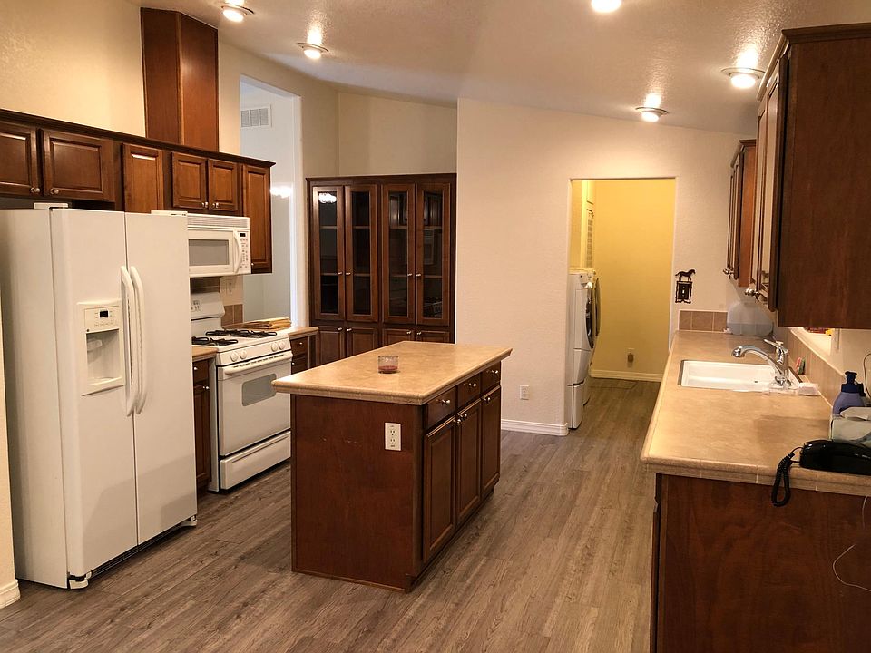 The house has two large living rooms with an outdoor deck off each patio for families to enjoy. There is also a large wood burning fireplace located in the living room. Large updated kitchen with all major appliances included. New carpet and paint throughout. In-home washer & dryer located in the laundry room off the kitchen. Three spacious bedrooms with 2 full bathrooms each with dual sinks. The lease also includes use of the 4 car detached garage.