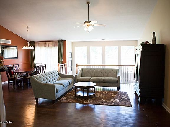 THESE MOTIVATED SELLERS JUST REDUCED This charming 3 bedroom, 3 bath brick ranch is located in the quiet Fern Creek neighborhood of Grey Oaks The main level includes vaulted ceilings, open concept kitchen, dining & living rm, a spacious master bedroom w/attached full bath & walk-in closet. The split floor plan includes 2 other generous sized bedrooms w/walk-in closets & another full bath. Hand scraped hardwood flooring throughout the common areas & new carpet in the bedrooms was installed in Dec. 2013. The bsmt is great for entertaining & offers a huge open space including a bar along w./a full bath & 2 more rooms w/large closets & an unfinished area for storage. The backyard includes a beautiful aggregate patio that looks into a wooded area.