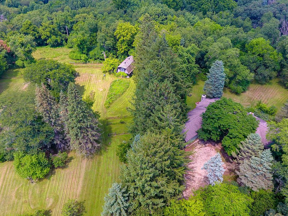 Create your forever home in this solidly built house. Situated on a 5 acre private, secluded lot tucked away in the heart of Barrington Hills, this unique one of a kind ranch home with walk out lower level boasts rustic charm. The 4 bedrooms are all oversized. The master bedroom offers a private bath. The expansive family room features a vaulted ceiling and massive stone wood burning fireplace. In addition to a mud room, there is rough-in for an additional bath. Enjoy nature from every window. Property includes a 3 stall barn with loft storage and plenty of space for multiple pastures, as well as a shaded Koi pond, large chicken coop with enclosure, large expandable vegetable garden area and 2 car garage. Only minutes to the nearby downtown area and Metra train line. Bring your ideas and make it yours. Sold as is.