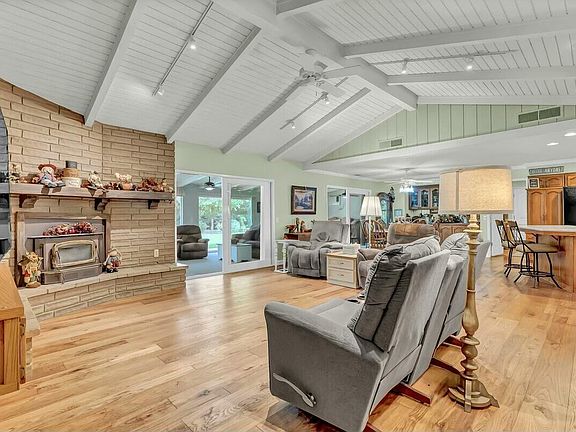 An opportunity of a lifetime! Nestled in a grove of citrus trees out in the countryside on 1.34 acres, this 3 bedroom, 2.5 bath country charm home awaits you. The spacious kitchen is a baker's dream with a double oven and plenty of counter space. You can enjoy your favorite movie while cooking as it overlooks the living area. Engineered hardwood floors throughout the home with carpet in the bedrooms. Keep the home nice and toasty in the winter with a wood burning stove. Too much to list!
