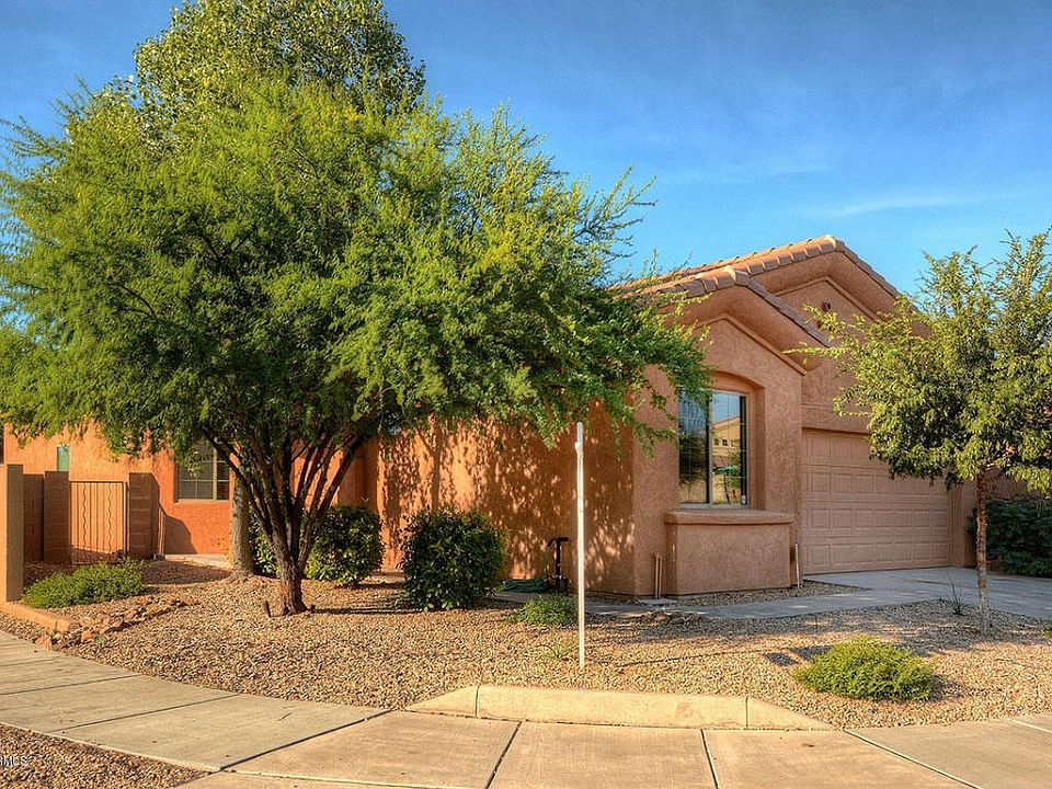 Open and bright floor plan with split bedrooms and a fabulous great room with high ceilings. Move in ready and freshly painted 3 bedroom, 2 bath corner lot home in the upscale area of Rita Ranch Crossing. Located directly across the street from neighborhood park. Great room is approximately 700 square feet. Easy care landscaping front and back. Ideal home in Vail School District. Dual sinks in master bath. One of the nicest homes in Rita Ranch.