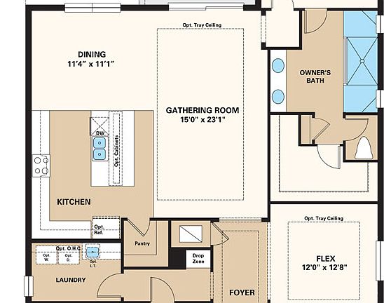 Explore the stunning Azzurro floor plan. This 1,886 sq. ft. one-story home with 2 bedrooms, 2 bathrooms, flex room & a 2-car garage boasts both spacious living areas and the welcoming comfort that modern homeowners desire. Enter through the foyer into the expansive gathering room, passing by the secondary bedroom, bathroom, flex room and hallway leading to the laundry room. The central living area is overlooked by the beautifully-appointed designer kitchen and dining area. This space is also complemented by an outdoor living section, as the lanai lays at the back of the home. This space is thoughtfully structured to accommodate both the memorable entertaining of your guests and your calmer nights of revitalization and relaxation. Beyond the gathering room, you'll find your striking owner's suite, fitted with an owner's bath that showcases with a dual-sink vanity, spacious shower, and large walk-in closet! The Azzurro also offers exciting upgrade options such as a third bedroom or study in lieu of the flex room, extended lanai, bay windows, and more! Discover all of these spectacular and inspired features within this unique home!