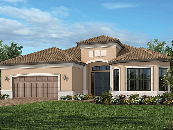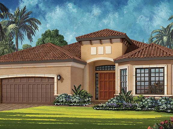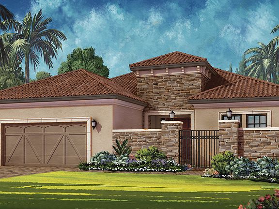 The open-concept Pallazio home design features ample square footage, several upgrade options both indoors and out, and attractive appointments throughout. 2,929 square feet bring forward three bedrooms plus a study and alternate room layouts give the design a customizable, more personalized array of possibilities within.The Pallazio is certainly inviting, with a central common area that holds the gathering room, kitchen, and dining area. The gathering room can be graced with a sophisticated tray ceiling if you like. A large island with an optional veggie sink and a step-in pantry are included in the kitchen, which can be extended to create a casual dining nook. You also have gourmet upgrade options in the designer kitchen. This area acts as the heart of the home, allowing you to do it all here, from entertaining to unwinding from a long day. The spacious Owner's Suite, tucked away at the back of the home, includes an elegant bedroom, finely appointed bath and over-sized walk-in closet. Options for the bedroom include a tray ceiling, bay window, and a door that gives you direct access to the sun-soaked lanai. Double doors lead from the bedroom to the Owner's Bath with dual sinks, large shower, and private water closet. Add an optional garden tub perfect for indulging in a little me-time.Visiting guests will feel spoiled during their stay in the two guest bedrooms. One includes a private full bath with a shower while the other is conveniently close to another full bath wh
