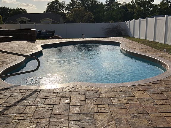 Gorgeous Bozzi Built House- 3/2/2 with half bath. Gourmet Kitchen/Granite Countertops and Bar, New Stainless Steel Appliances, New AC, Plant Shelves,Breakfast Nook/Bay Window,House Totally Tiled,Great Room & Family Room,Formal Dining room,Huge Master Bedroom/Two Walk-in-Closets,Master Bath has Garden Tub/Snail Shower,Granite Double Vanity Sinks. Also,Two Queen-Size Guest Bedrooms,Inside laundry, Custom Wood Blinds and Window Treatments,Sprinklers/Gutters, Downspouts,Dimensional Roof,Oversized Garage,Vinyl Privacy Fence,Large Open Lanai with new Salt Water Pool and Brick Pavers and Firepit. Pavers recently sealed. 8 security cameras with video monitoring system. All window treatments and blinds included. Nicely Landscaped Corner Property/Cul-de-Sac.