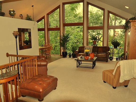 This fantastic villa with spectacular views overlooking an incredible wooded lot in The Hamlets of Woodland Ridge is now available. The villa offers over 2,400 square feet of living space on two levels and also includes four private decks. The sizeable great room, with 16' ceilings, has floor to ceiling windows, offering endless views to the outside. It also features built-in cabinets. A chef's kitchen boasts granite counter tops and stainless steel appliances, as well as a gas stove grill and double oven for the chef to enjoy. The kitchen opens to the great room for a wonderful main level entertaining space. Just off the kitchen is an enclosed screened in porch, offering a more secluded space and beautiful views. The walkout lower level features a gas fireplace and ample space for entertaining. The lower lever is 10 feet above the ground, with two large decks that are surrounded by trees, making you feel as if you are in your own private tree house. The lower level also has a second bedroom with full bath. Additionally, there is a open-den with great views to the porch and back yard. The association tennis court and pool is located just down the street.