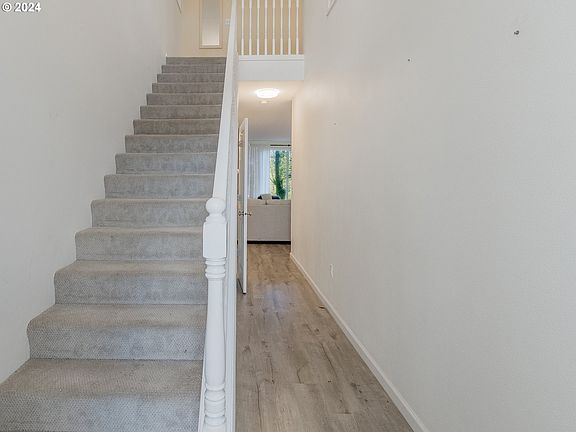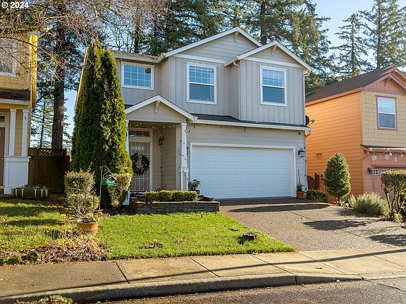 Enjoy the peaceful scenery from your back yard while listening to the nearby flow of the creek. This home is one of the few with a greenbelt backyard in the neighborhood. Private walking trails nearby. Trail behind home leads to a creek. The main level is bright and open with new flooring and paint, New stainless appliances with gas range. Primary bedroom has French doors, soaking tub and walk in closet. New paint upper level with brand new flooring, sinks and toilets in bathrooms and laundry room. Laundry located upstairs, easily accessible near bedrooms. Main level vanity is new. The backyard offers privacy with raised garden boxes and fire pit. Clubhouse has hot tub, pool, workout room and more! Just 17 miles to PDX.