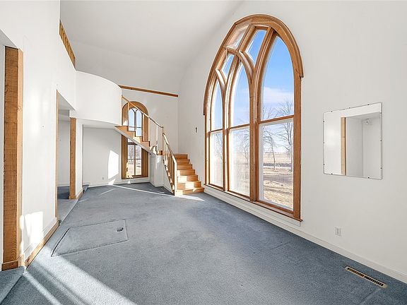 Sitting on just over 2 acres of beautiful Iowa countryside, this unique home was built in 1871 and has over 2700 sq ft of finished space. Originally renovated in 1975 by Architect Steve Mead of Better Homes and Gardens, this home continues to wow with incredible original features like the fourteen by ten foot Gothic front window and the three feet by ten feet Romanesque side windows. The bell tower is one of the home's best features; it's a great spot to stargaze or watch the entire Des Moines metro's 4th of July fireworks. Natural light fills this open concept 4 bedroom and 3 bath home. You'll love this location; it's a few miles from Badger Creek State Park, where you can walk through the sunflower fields or fish in the 276 acre lake. There is so much to appreciate about this historic home. Call a Realtor today to set up a private showing.