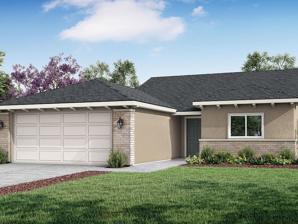 Call this beautiful Ashford plan your home 1,298 square feet, single story, 3 bedrooms, 2 bathrooms featured by the park. This quality-crafted plan offers Mediterranean styled exterior designs that create an inviting atmosphere of individuality with a charming covered patio and more. On the interior of the home, you will find standard features such as tile flooring at the entry, kitchen, baths and laundry room, Whirlpool® electric range, ventilation microwave hood, dishwasher, and stylish white cabinetry as standard or upgrade for more selections. Montebella provides a quiet, small town charm, while being an easy commute to larger cities like Visalia and Fresno. Call the sales office to find out more about this plan's availabilities and ways you are able to customize it.