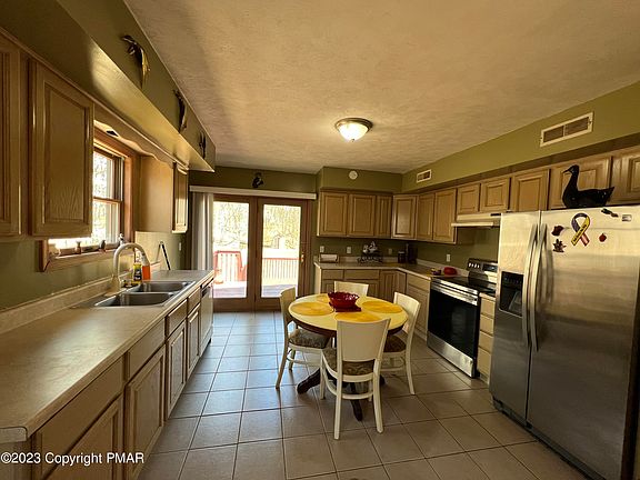 FHA Appraised & Approved @ 270,000!!! Come check out this spacious 4 Bedroom 3 Bath Split Level in Amenity filled Pocono Ranchlands! Cathedral Ceiling Living Room Welcomes you into the home w/ Steps into Open Concept Dining Area to Large Kitchen w/ Sliders onto Multi Level Deck. Primary Bedroom w/ Updated Bath, 2 more Bedrooms & Full Bath Complete Upstairs. Lower Level features Huge Family Room w/ Sliders & Propane Stove, Upgraded Bath & 4th Bedroom. Can't forget about Garage & Basement Area w/ Laundry & Tons of storage. Community offers Horse Back Riding, Pool, Skiing, Playground, Ball Fields & Hiking Trails! Come Make this Lovely Home Yours! Reasonable taxes!