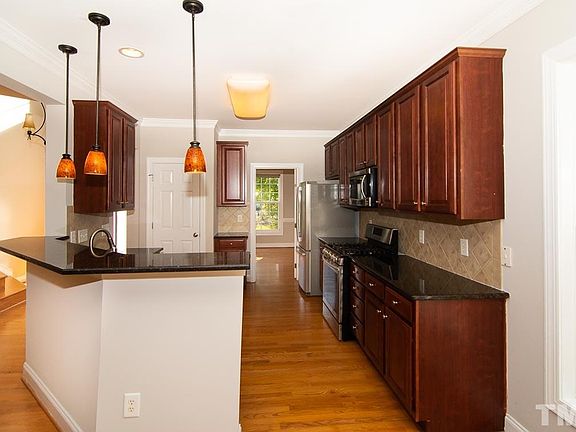 Spacious 4 Bedroom 3 bath PLUS Bonus single family in desirable SW Durham. New roof, fresh paint, and HVAC less than 3 yrs old. Gourmet kitchen with SS appliances and granite counter tops. Hardwood throughout 1 fl. Wooded stairs. Fireplace. Luxurious master bath. Screened porch overlooks flat, fenced, private yard. American Tobacco Trail Access, neighborhood park with stocked pond and playground. Bedroom on 1st fl. Minutes to Southpoint Mall, I-40, RTP, Duke & UNC.