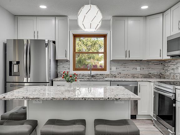 Come see this amazing nicely updated 5 bedroom, 2 bathroom remodel with a beautiful four season porch. This four level house offers updates galore. Updates include new flooring, paint, trim and new high-end Samsung appliances that are WiFi capable, new gourmet kitchen with soft close and solid wood, granite counters, and gleaming LVP floors. All bathrooms have been updated to perfection with tile, lights and vanities. Other updates include a high a efficiency furnace(2015), roof(2015), vinyl windows, a new driveway(2021), and a newer water heater. Outside you will find a 24x12 deck and a nicely sized backyard. Enjoy the amazing four season porch that is sun filled. Do not miss this amazing home in a great neighborhood with highly-sought after 196 schools, many parks, trails, and shopping centers.