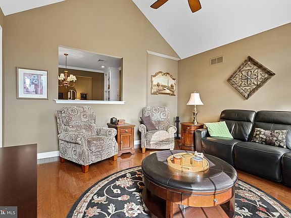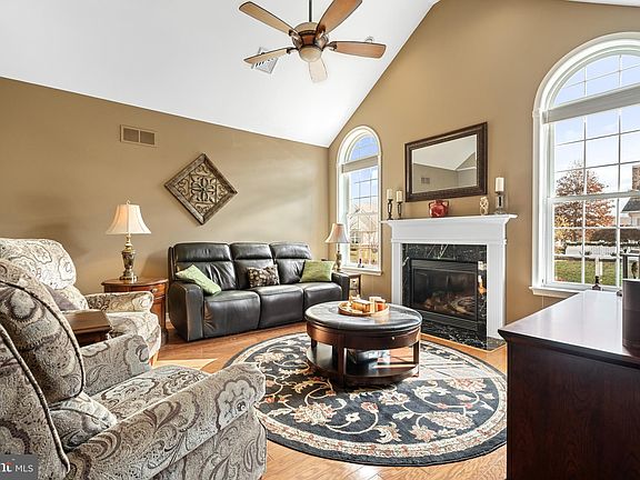 Welcome to this meticulously cared for carriage home located in the highly desirable 55+ community of The Vineyards. Featuring 1,914 SF, this lovely home offers an open floor plan, beautiful hardwood flooring, 9' ceilings and crown molding. The kitchen is well appointed with propane cooking, stainless steel appliances and a bright and cheery breakfast room. There is a cathedral ceiling in the living room that helps fill the room with natural light, where you can warm up by the fireplace on those chilly nights. The formal dining room allows plenty of room for gatherings and includes a lovely built-in hutch. Continuing on the main floor, you will find a study behind french doors, the primary bedroom with a walk-in closet, primary bathroom with a dual vanity and a step-in shower with built-in seat. Also on the main level is a den, a full bathroom and the laundry area. The second level offers an additional bedroom for guests and a walk-in closet. Outside there is a paver patio, perfect for entertaining or relaxing with a book. The two car attached garage is spacious enough for storage and there is a separate closet for the utilities. Blown-in attic insulation has been added for energy efficiency. The Vineyards is a gated community, located in rural Upper Hanover Township, just minutes from shopping, dining, medical facilities and major routes. Take a stroll on the scenic paved walking path, or check out the 3 hole chip and putt. There is also a tot lot for your visiting little ones and a clubhouse. Schedule your appointment today!