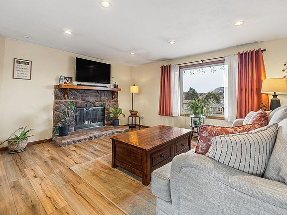 Think you're getting an old 1970s retro home with this one? No Way! This home has been brought up to date and move in ready! Gone are the limiting pony walls and walls between the kitchen and living room, leaving you a bright open floorplan with more usable space than ever. Recessed lighting, new flooring, new sliding door from kitchen to deck and granite and butcher block countertops are just a few of the big upgrades upstairs! Kitchen appliances about four years old. Home had new siding and roof about 4 years ago too. Home is efficient with woodburning stove in the basement that helps heat the whole home. Big back yard with three gates. Lots of room on east side of home for a two-car garage. Saving the best asset for the last, check out the views! You sit up high so you can see some of the city and the beautiful Needles and mountain ranges. Home has air conditioning too--not too many homes in Custer have that!
