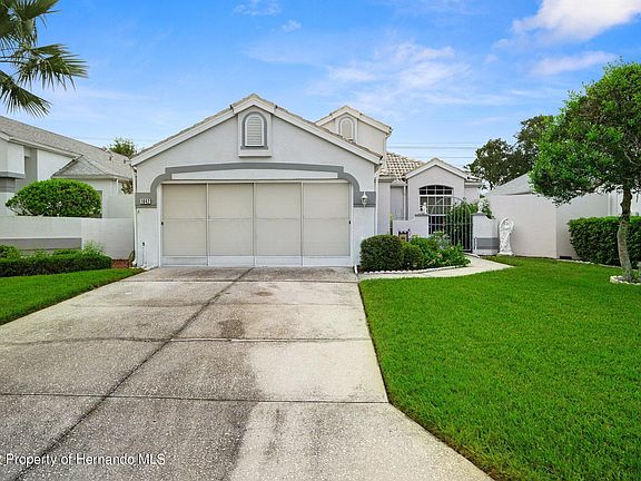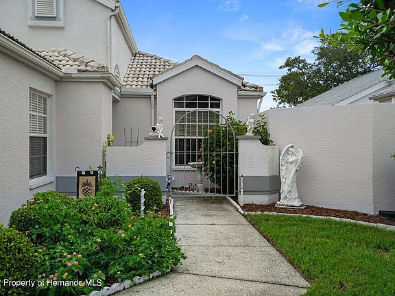 ACTIVE UNDER CONTRACT. Extremely Well Maintained 2/2/2 Villa Styled Home Located In The Gardens of Seven Hills. Features Include the Popular Open Living Dining Room Styled Floor Plan with Soaring Vaulted Ceilings. Larger Kitchen With New Stainless Steel Fridge And Range, Offers Plenty of Countertop Workspace And Cabinetry, A Pantry & Eat-In Nook Area. Open Family Room Offers Lots of Privacy Windows & Blinds, Plant Shelves & Architectural Features. Large Master Suite Boasts Walk-in Closet, Tiled Step-in Shower And Linen Closet., Tiled Flooring & Double Vanity Sinks. Oversized 2nd Bedroom With a Spacious Closet. That Accesses The Full Size 2nd Bath. Inside Utility Room, Shelving & Soaking Sink. Private Relaxing Larger Vinyl Windowed & Screened in Lanai Area. New A/C handler too. Maintenance Free Community. A Must See!