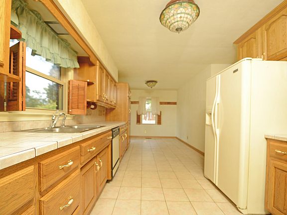 4 Bedroom, 2 1/2 baths, living room dining room , eat in kitchen , den, 1 car garage, 3 car detached garage , deck, full basement, gas heat air, replacement windows, hardwood floors Barber oak cabinets with almost 2,000 square feet main floor