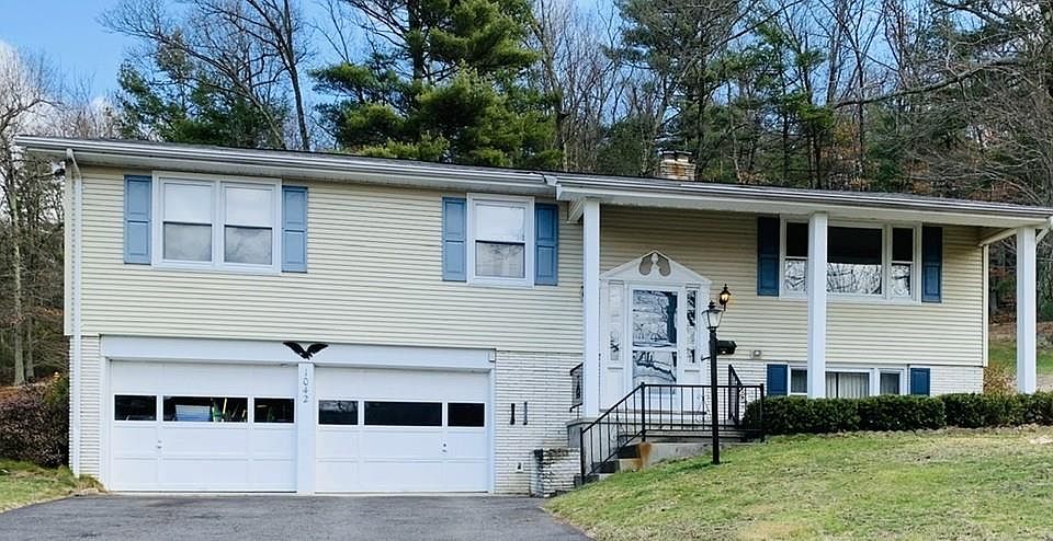 Don't miss this Immaculate Split Level Ranch with many important updates. Located in a desirable area of Palmer, on a corner lot and dead end street.....PRIVACY. With vinyl siding, updated windows and roof, the outside looks as good as the inside. This home has solid bones with hardwood floors in all 3 bedrooms, Livingroom and dining area. The master bedroom has two closets one being a small walk-in. The finished basement is bright with full windows, wall to wall carpet and a convenient half bathroom. Currently being used as an in-law suite, but has so many more options. The basement also has a separate laundry space with set sink. Walkout from the finished basement to your attached 2 car garage. Some interior updates include: New Buderus Boiler, hot water tank, Mitsubishi cooling mini split, updated electrical panel. (APO) Enjoy a perfect sized lot with mountain views, stone wall and established gardens. 5 minute drive to MA Pike