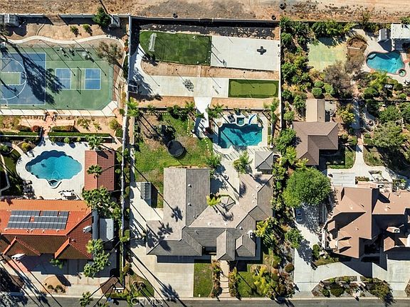 Discover the epitome of elegance in this remarkable single-story estate, set on more than three-quarters of an acre in the coveted Hillcrest community. Designed for both luxurious comfort and unforgettable entertaining, this property combines sweeping views, refined interiors, and resort-style amenities into a true dream home. Inside, the home welcomes you with timeless sophistication. A formal living room with a cozy fireplace sets the tone, while the elegant dining room is ideal for hosting special occasions. The expansive family room features a second fireplace and sleek wet bar, seamlessly blending warmth and functionality. At the heart of the home, the chef’s kitchen impresses with custom maple cabinetry, a butcher block island with prep sink, and premium finishes crafted for culinary excellence. The versatile layout includes four spacious bedrooms, a dedicated office, and a game room, offering the perfect balance for work, relaxation, and play. The primary suite provides a private retreat, while every corner of the home reflects thoughtful design and generous proportions. Step outside into your private backyard oasis. Entertain with ease at the built-in outdoor kitchen with BBQ and fire pit, or relax by the sparkling pool and spa. For recreation, enjoy stadium-lit sports courts and a six-hole putting green. With rear access to the lower lot, there’s also room to add an ADU, workshop, or additional amenities to suit your lifestyle. Practical luxury continues with a finished four-car garage featuring custom cabinetry, upgraded doors, epoxy flooring, and gated RV parking. Additional upgrades include zoned HVAC, whole-house fan, central vacuum system, and a hot water recirculation system—ensuring comfort, convenience, and peace of mind. Opportunities like this are rare: a true single-story estate in one of Riverside’s most desirable neighborhoods. Don’t miss your chance to experience Hillcrest living at its finest—schedule your private tour today.